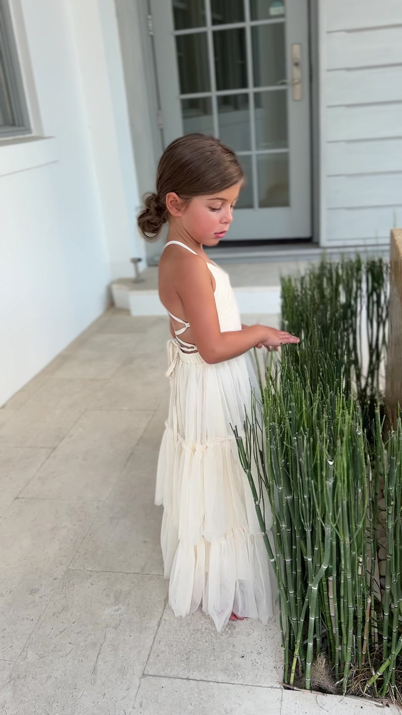 Some dresses are just made for beautiful destinations. The Wendy Dress in tulle is just that with a beautiful tie back for a look that is dramatic yet down to earth.