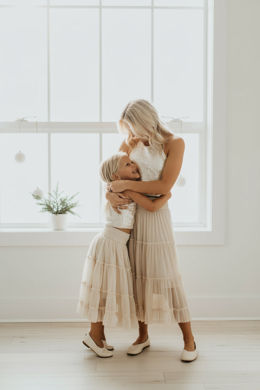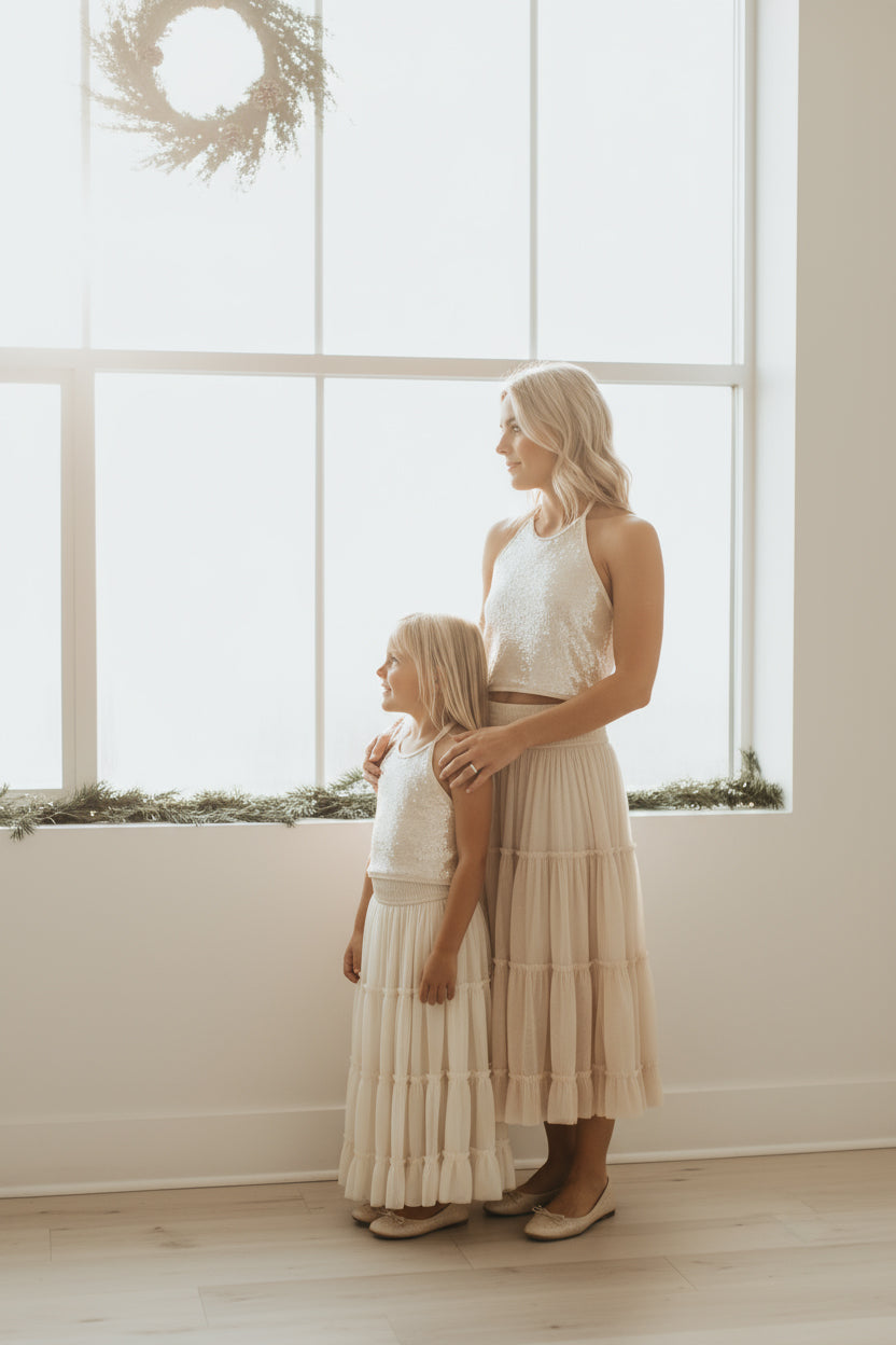 Our natural champagne sequin is a luminous, neutral tone—soft and dreamy with just the right amount of glow.
