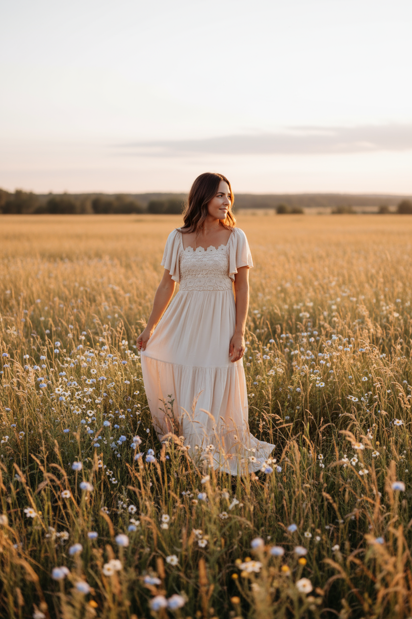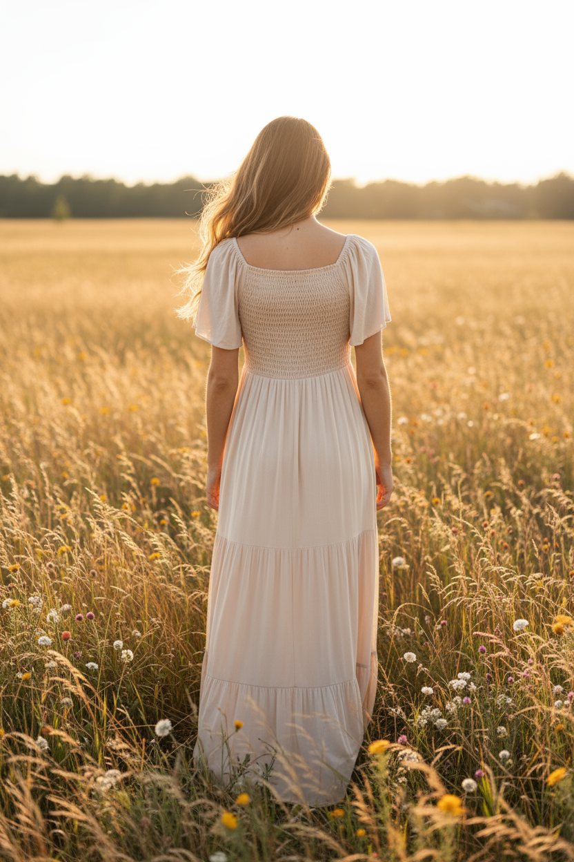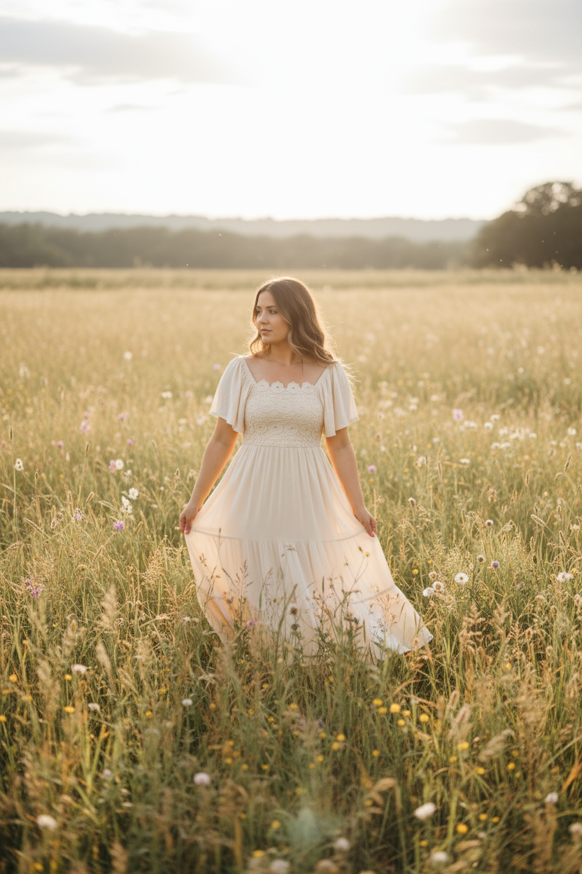 - Whimsy in Motion – Wide flowing hemline creates soft movement and photo-ready twirls.