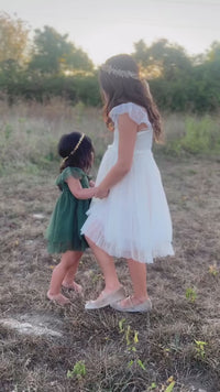 Whimsical like a forest fairy, the Fawn Dress in Forest Green is a soft-spoken showstopper. With dreamy layers of the softest tulle, it's made for magical moments—from special events to everyday twirls. A smocked back bodice allows for all-day comfort and seasons of wear, while the flowing silhouette gives her room to run, twirl, and just be her. Whether she’s posing for a photo or twirling in the lawn, Fawn always fits the moment.