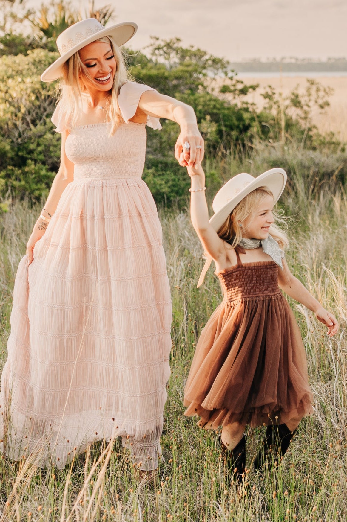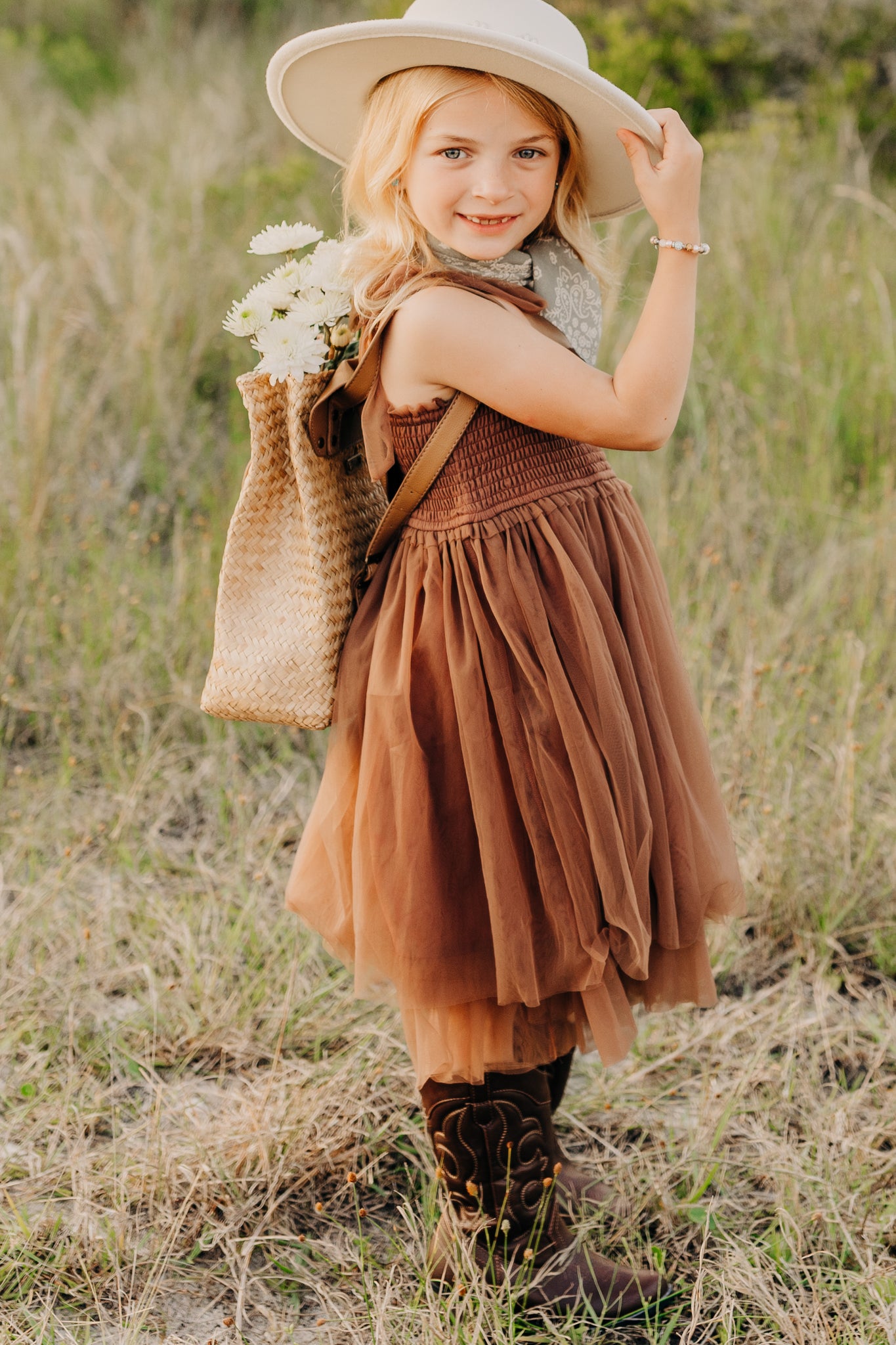 What photo dreams are made of — Isa is a vision in soft, flowing layers of airy tulle, drifting effortlessly over a breathable gauze underlay. A heart-melting silhouette with endless charm, she’s thoughtfully made for movement, comfort, and keepsake moments. Whether tied at the neck or shoulders, Isa is as versatile as she is timeless—ready for twirls, portraits, and magical everyday memories.