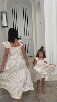 Effortless and enchanting, the Pia Dress in gingham is made for twirl-worthy days and memory-filled moments. With a silhouette that balances comfort and grace, it flows from sunrise to sunset—perfect for skipping through wildflower fields, attending parties, or simply spinning barefoot in the backyard. It’s the kind of dress that becomes a favorite, again and again.