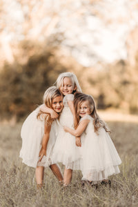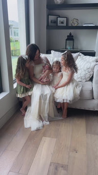 Crafted with dainty flutter sleeves, a beautifully smocked bodice, and tiered tulle layers, Juliet is truly a standout. The cotton liner and luxurious tulle are both soft and comfortable—designed for all-day wear and magical memories.