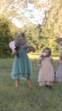 Crafted with dainty flutter sleeves, a beautifully smocked bodice, and tiered tulle layers, Juliet is truly a standout. The cotton liner and luxurious tulle are both soft and comfortable—designed for all-day wear and magical memories.