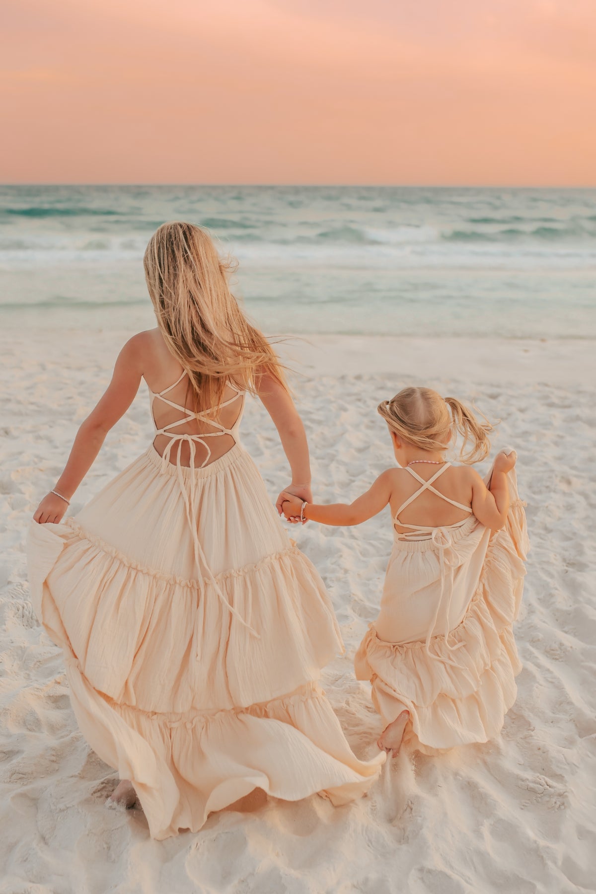 Some dresses are just made for beautiful destinations. The Wendy Dress in muslin is just that with a beautiful tie back for a look that is dramatic yet down to earth.
