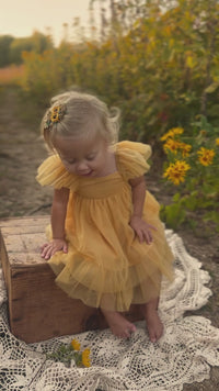 Whimsical like a forest fairy, the Fawn Dress in Saffron Tulle is a soft-spoken showstopper. With dreamy layers of the softest tulle, it's made for magical moments—from special events to everyday twirls. A smocked back bodice allows for all-day comfort and seasons of wear, while the flowing silhouette gives her room to run, twirl, and just be her. Whether she’s posing for a photo or twirling in the lawn, Fawn always fits the moment.