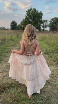 A dream in layers of soft swiss dot, designed for twirl-worthy moments and timeless elegance.