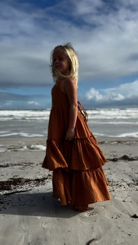 Some dresses are just made for beautiful destinations. The Wendy Dress in muslin is just that with a beautiful tie back for a look that is dramatic yet down to earth.
