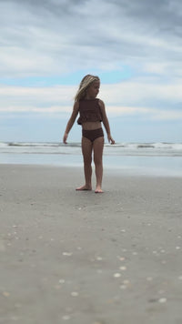 Our latest Tankini Set debuts in a luxuriously soft ribbed fabric, designed for play, comfort, and style. Crafted in a sophisticated brown, this two-piece is both sweet and sophisticated, making it a must-have for sunny adventures.