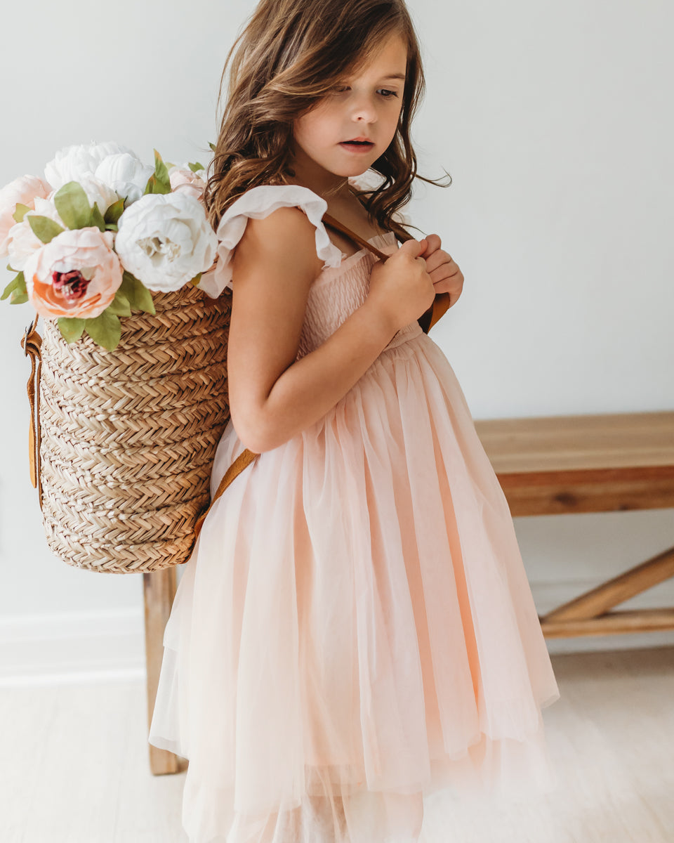 Crafted with dainty flutter sleeves, a beautifully smocked bodice, and tiered tulle layers, Juliet is truly a standout. The cotton liner and luxurious tulle are both soft and comfortable—designed for all-day wear and magical memories.