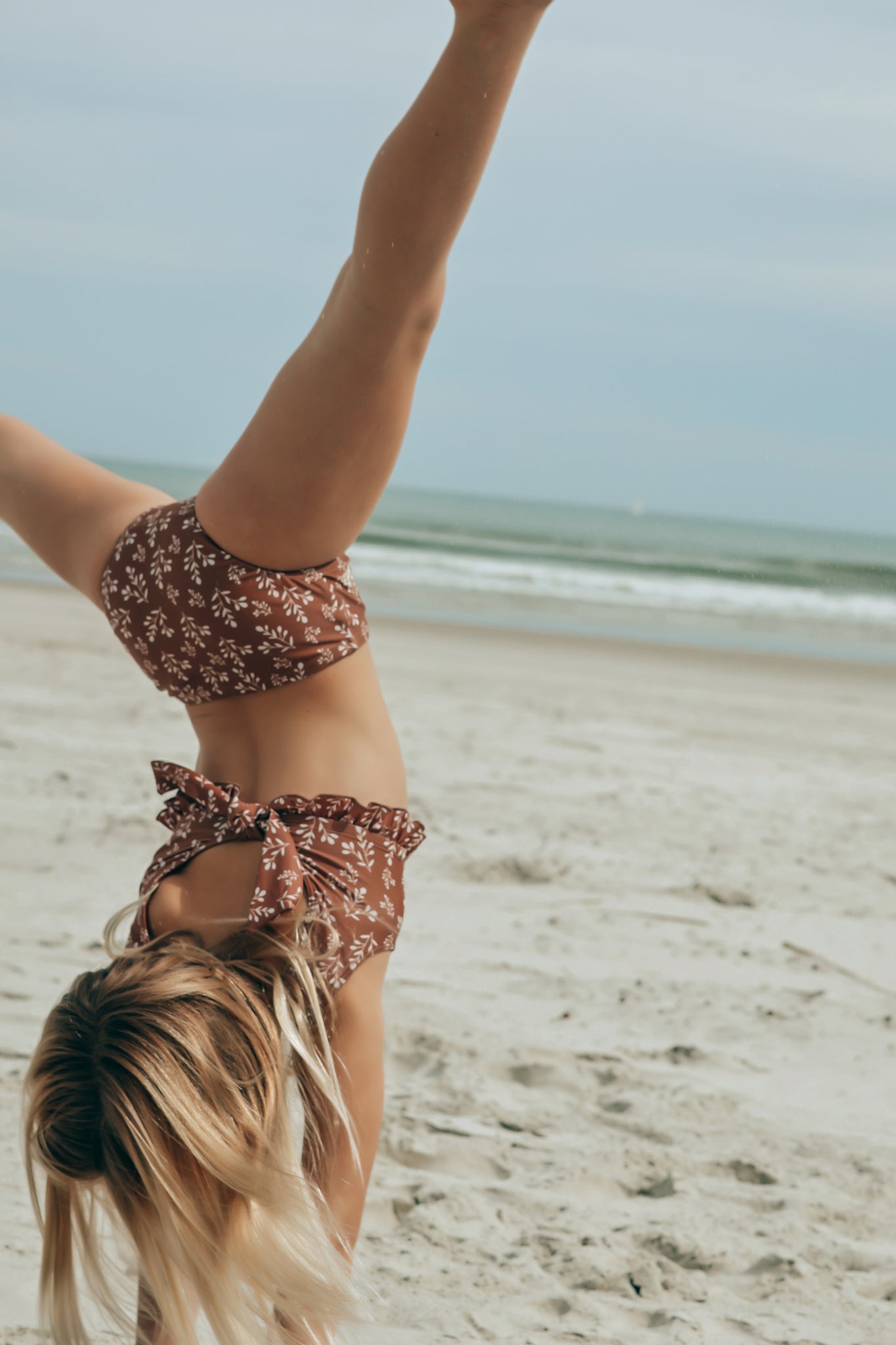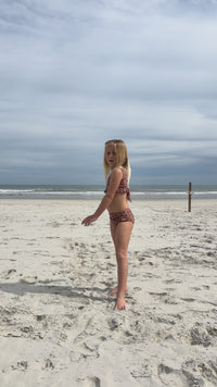 The back steals the show in this stunning two-piece, a signature INDIE favorite. Designed to look like a tie-back but crafted as a secure one-piece top, the scoopback set blends playful charm with thoughtful construction: